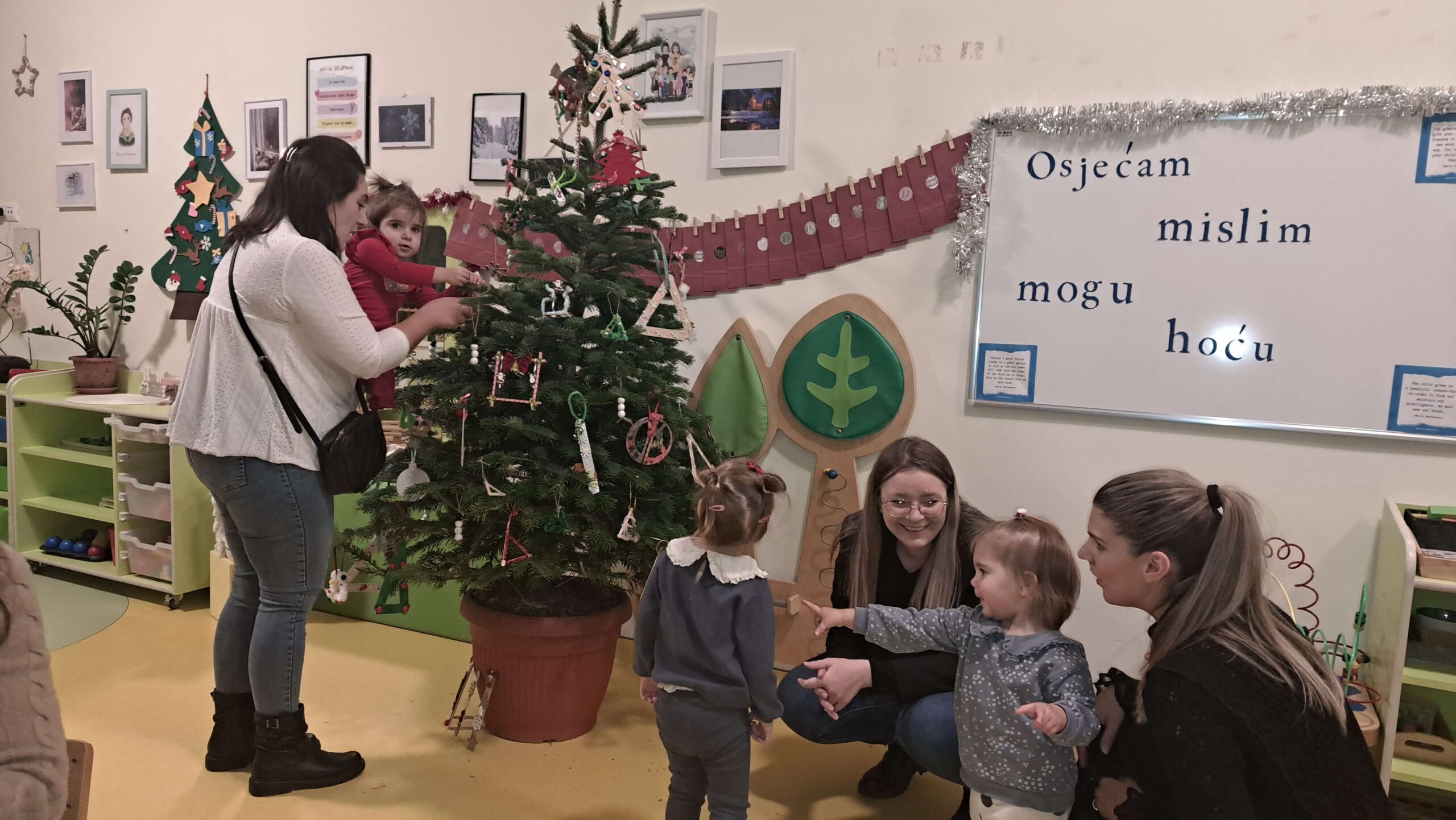 U četvrtak, 11. prosinca 2025., montessori jaslička skupina „Vrapčići“ imala je svoje tradicionalno božićno druženje djece, roditelja i odgojitelja. Djeca su sa svojim odgojiteljicama Ines Dujmić i Ivonom Šimić izrađivala božićne ukrase za prekrasnu živu jelku u tegli, koja je u vrtić stigla kao donacija obitelji Drčić. Djeca su već pokazala velik interes za brigu o svojoj jelki, a plan je da se sljedeće godine presadi u vrtićko dvorište kao dio aktivnosti u sklopu projekta „Eko svijet“, s ciljem razvijanja svijesti o ekologiji i očuvanju prirode.