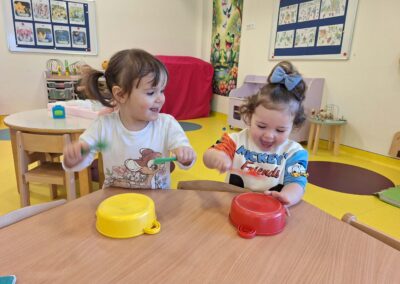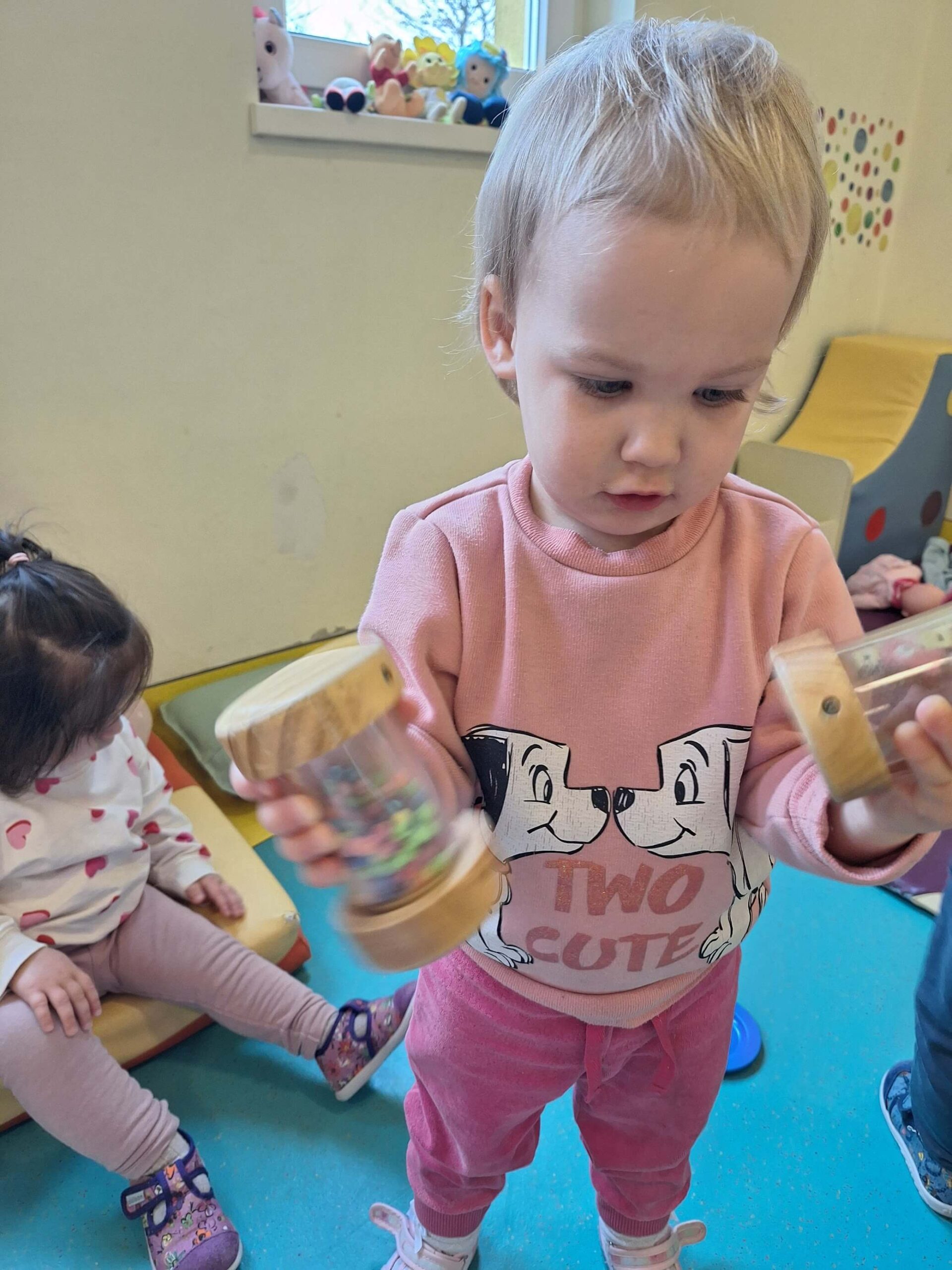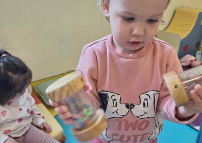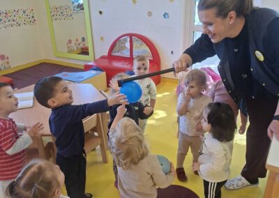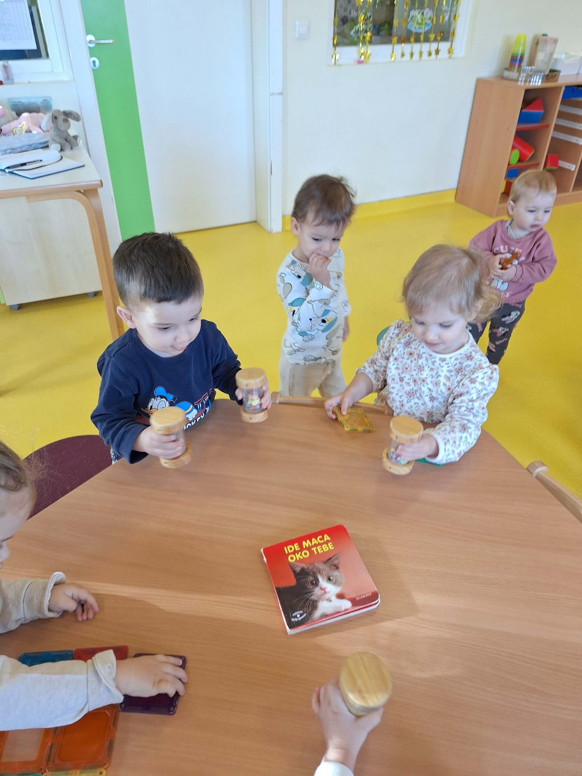 Jedna od omiljenih aktivnosti bila je stvaranje zvukova uz pomoć malih zvečki. Djeca su spontano istraživala kako se zvuk proizvodi, mijenja i kombinira, razvijajući pritom osjećaj za ritam i koordinaciju pokreta.