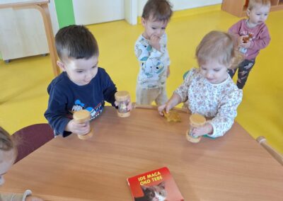 Kroz svakodnevne situacije poticali smo djecu da osvijeste zvukove oko sebe – slušali smo kišu kako pada, vjetar kako puše, kolica u hodniku ili kapanje vode. Ovakve aktivnosti doprinijele su razvoju pažnje i koncentracije, ali i emocionalnog doživljaja svijeta oko njih. Djeca su s velikim interesom sudjelovala u igrama prepoznavanja zvukova, u kojima su uz puštanje audiosnimki pokušavala pogoditi o kojem se zvuku radi.