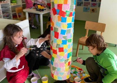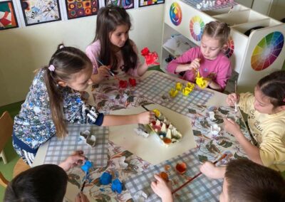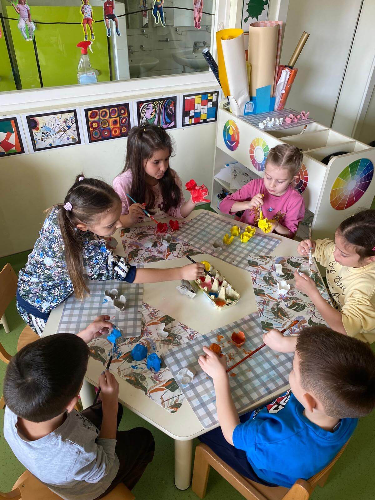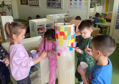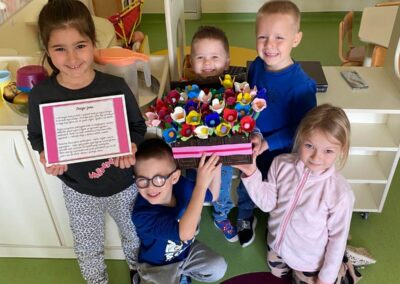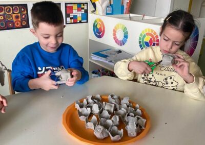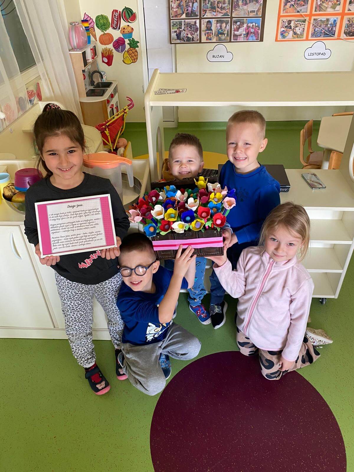 Kroz niz kreativnih aktivnosti djeca su pokazala kako se stari i odbačeni materijali mogu pretvoriti u nove, vrijedne predmete. Izrađivali su cvjetni buket od kutija za jaja, gdje su uz pomoć boja, kolaž-papira i recikliranih flomastera stvorili jedinstvene cvjetove. Ova aktivnost nije bila samo likovno izražavanje, već i prilika za učenje o važnosti ponovne uporabe i očuvanja okoliša, uz razvoj kreativnosti i zajedništva.