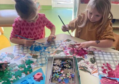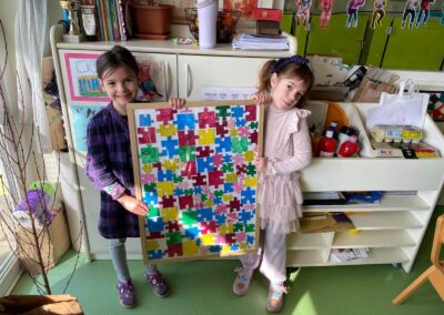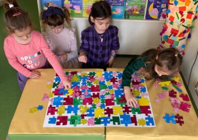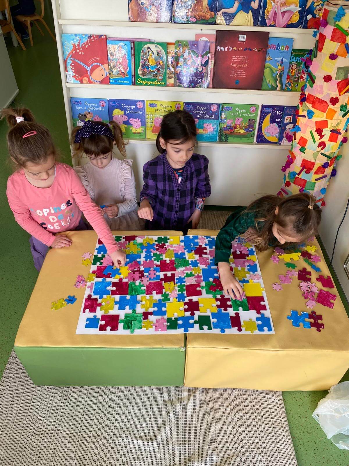 Jednako zanimljiv bio je i rad s potrganim puzzlama, koje su djeca pretvorila u zajedničko umjetničko djelo. Bojanjem i zajedničkim slaganjem nastala je nova slika koja simbolizira povezanost, suradnju i prihvaćanje različitosti. Kroz ovu aktivnost djeca su osvijestila kako i nesavršeni dijelovi, kada se spoje, mogu stvoriti vrijednu i lijepu cjelinu.