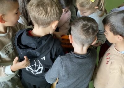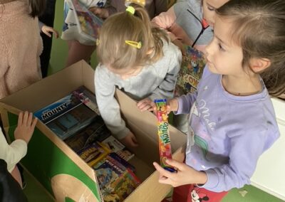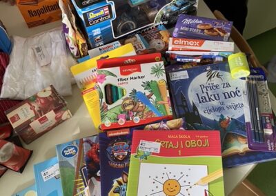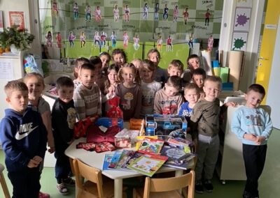 Posebno uzbuđenje vladalo je tijekom pakiranja dvaju poklon-paketa. Djeca su s pažnjom birala i slagala sadržaj, surađivala i zajednički stvarala nešto što ima poseban smisao. Kroz ovu aktivnost spontano su razvijali empatiju, osjećaj odgovornosti, strpljenje i međusobno uvažavanje.