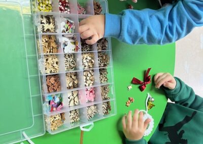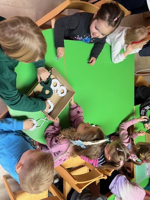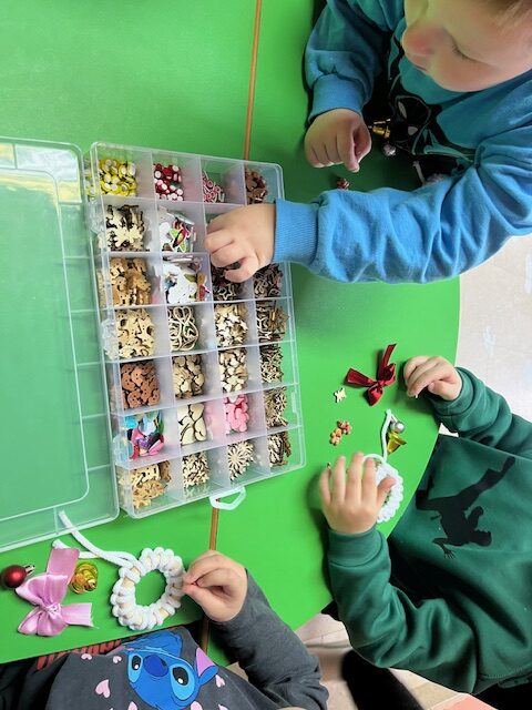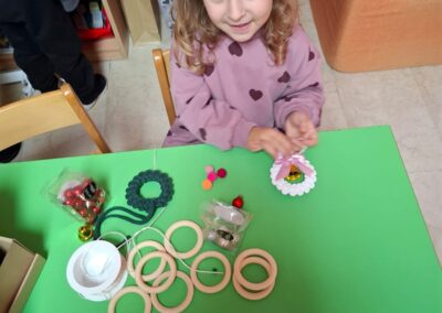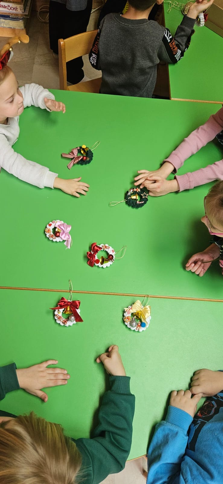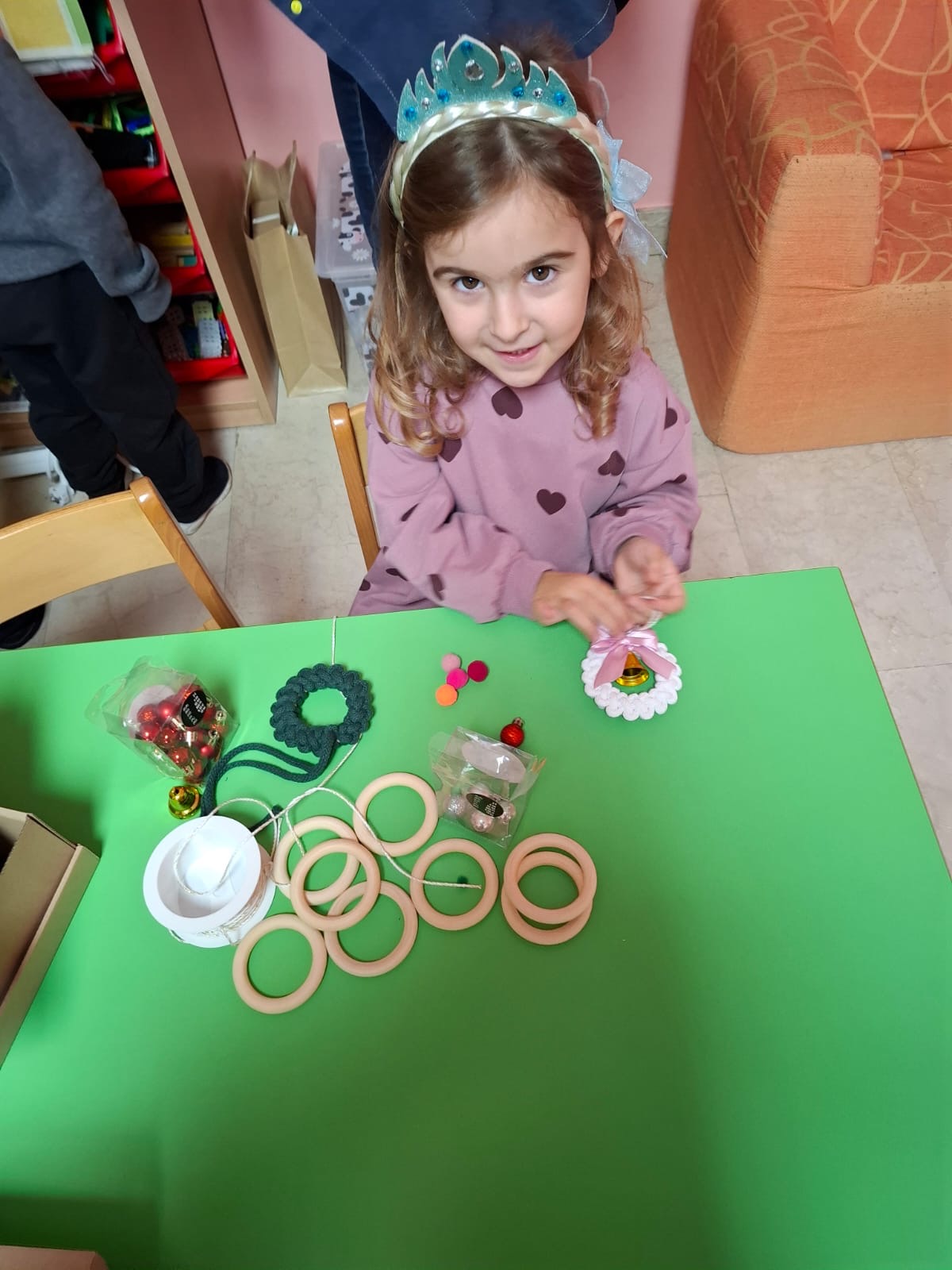 U predblagdanskom ozračju, mali su kreativci osmišljavali i izrađivali božićne vjenčiće, prekrivene zelenim ili bijelim konopom te ukrašene raznolikim motivima po vlastitom izboru. Svaki je vjenčić bio jedinstven odraz djetetove mašte, a nastale radove djeca će ponosno odnijeti kući i objesiti na božićno drvce.