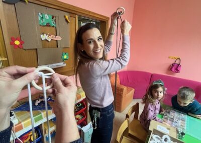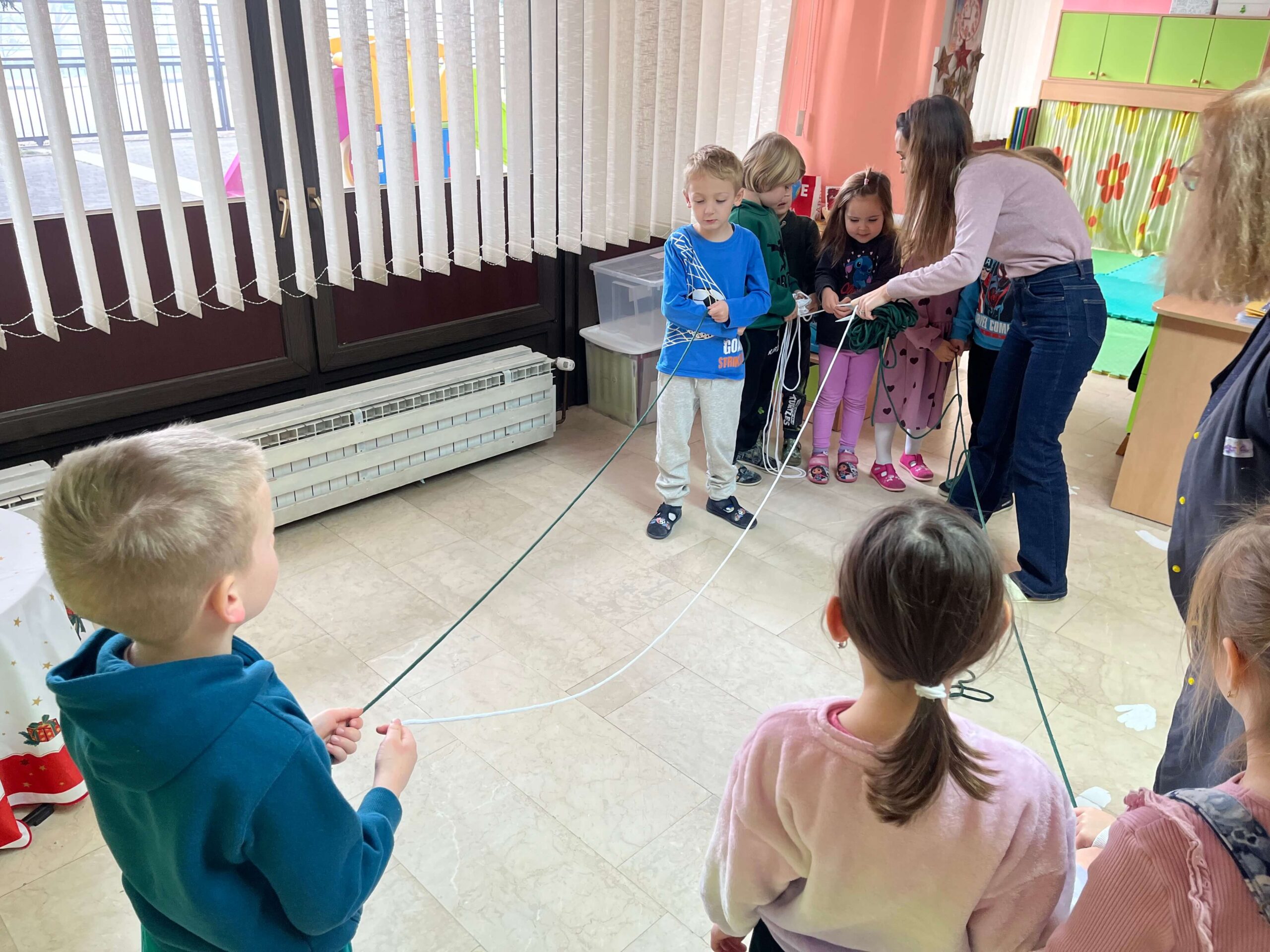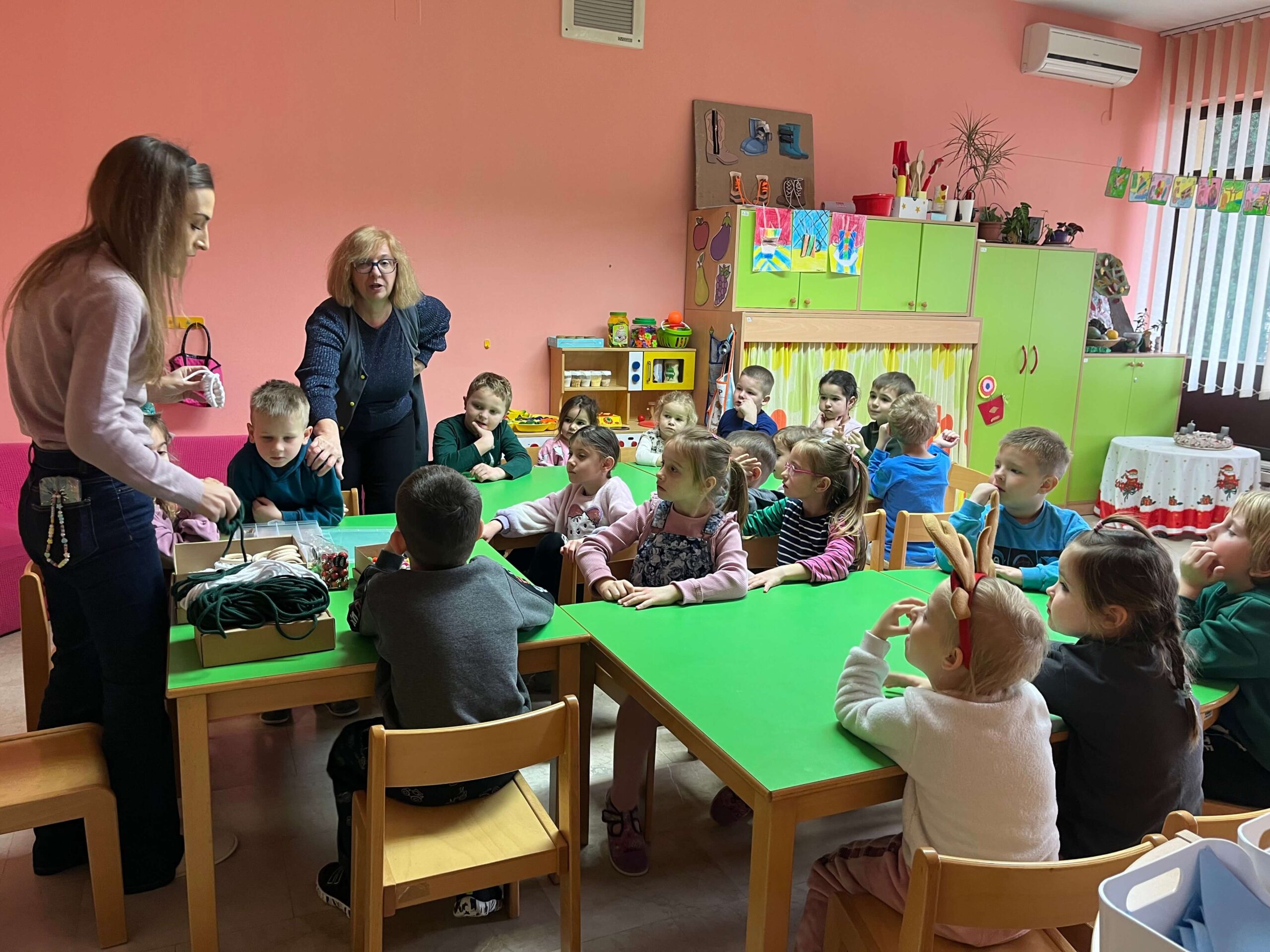 Skupina Pinokio ugostila je Francisku Štarkelj Gotal, umjetnicu iza imena Megita Art, koja je djeci predstavila tehniku makramea, staru vještinu vezivanja čvorova u dekorativne uzorke. Djeca su, uz svoje odgojiteljice Gordanu Sokić i Kristinu Maković, imala priliku upoznati različite vrste pamučnog konopa te otkriti kako se strpljenjem i maštom mogu izraditi unikatni ručni radovi.